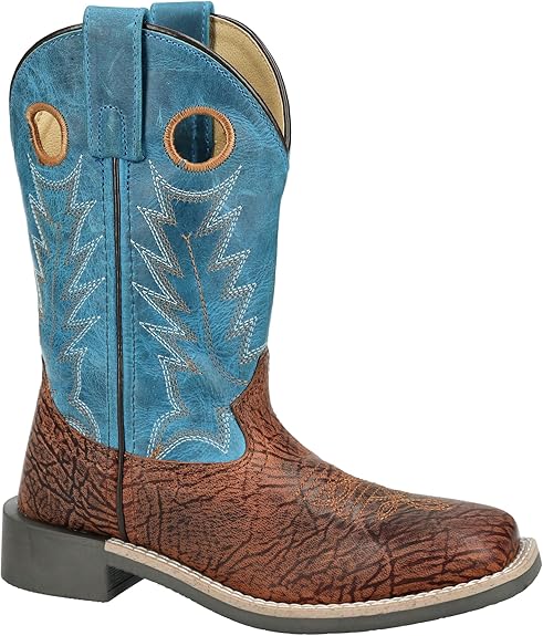 Kid's Smoky Mountain Jesse Distressed Brown/Turquoise Square Toe Boot