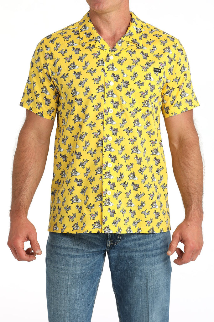 Men's Rock & Roll Cactus Print Tek Western Short Sleeve Button Down Shirt